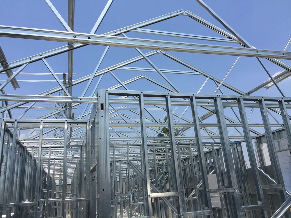 Легкая стальная конструкция жилого строения, состоящая из тонкостенных холодногнутых стальных компонентов, сталь армирована антикоррозионным высокопрочным холоднокатаным оцинкованным листом, эффективно предотвращает коррозию пластины в процессе строительства и эксплуатации, увеличивает срок службы легких стальных компонентов.
