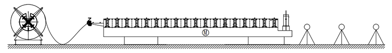 Размотчик →Ручное устройство предварительной резки → Кормить Направляющее устройство → Система прокатки и формовки → Гидравлическое устройство для резки столбов → Выходная стойка